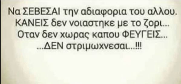 «Να σέβεσαι την αδιαφορία του άλλου, Κανείς δεν νοιάζεται με το ζόρι, όπου δεν χωράς φεύγεις».