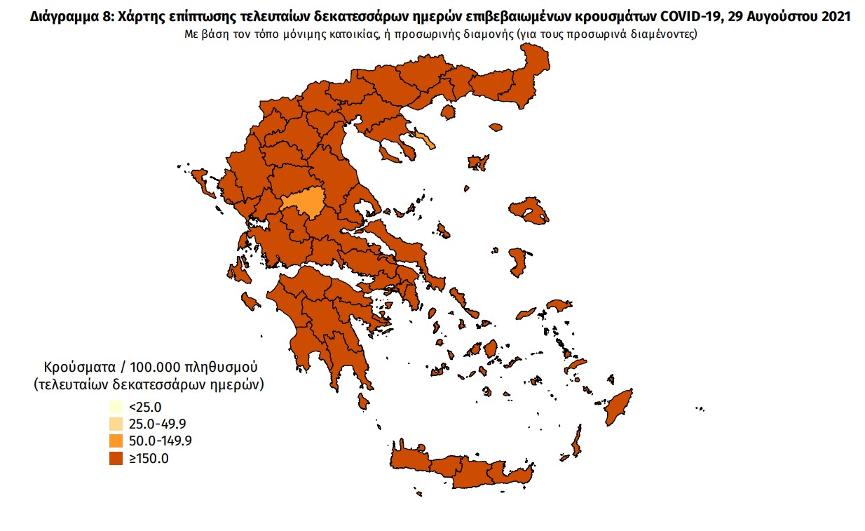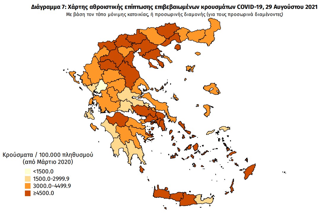 Με βάση τα επιβεβαιωμένα κρούσματα των τελευταίων 7 ημερών, 218 θεωρούνται σχετιζόμενα με ταξίδι από το εξωτερικό και 1.643 είναι σχετιζόμενα με ήδη γνωστό κρούσμα.