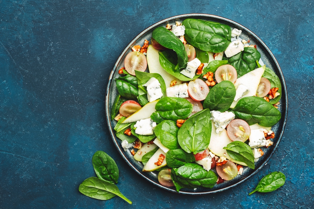 Προσθέστε τα λαχανικά, τα καρύδια, το τυρί και τα μήλα σε ένα μεγάλο μπολ σαλάτας. Ανακατέψτε το ελαιόλαδο, τη μουστάρδα, το μέλι και το μηλόξυδο σε ένα μικρό βάζο και πασπαλίστε με αλάτι και πιπέρι. Βάλτε το καπάκι στο βάζο και ανακινήστε καλά για να αναμιχθεί. Ρίξτε λίγη από τη σάλτσα της σαλάτας πάνω από τη σαλάτα και ανακατέψτε για να τα συνδυάσετε. Δοκιμάστε τη σαλάτα και προσθέστε ό,τι νιώθετε ότι λείπει.