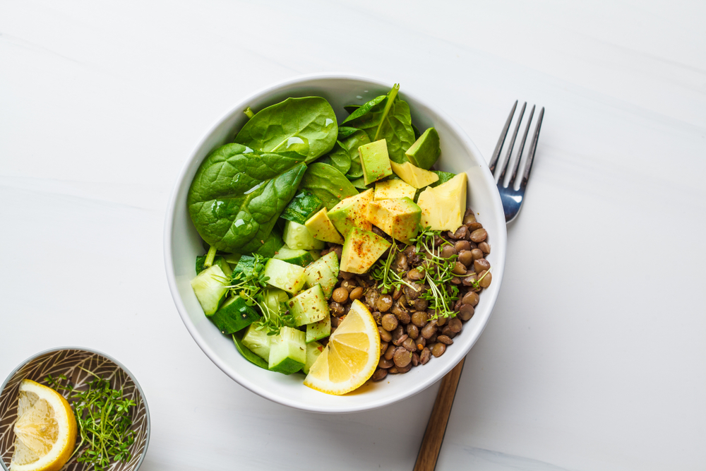 Πλένουμε τις φακές και τις βράζουμε για 20 λεπτά σε άφθονο, αλατισμένο νερό, μαζί με το φυλλαράκι δάφνης. Τις στραγγίζουμε καλά και τις αφήνουμε να κρυώσουν για περίπου 15 λεπτά.