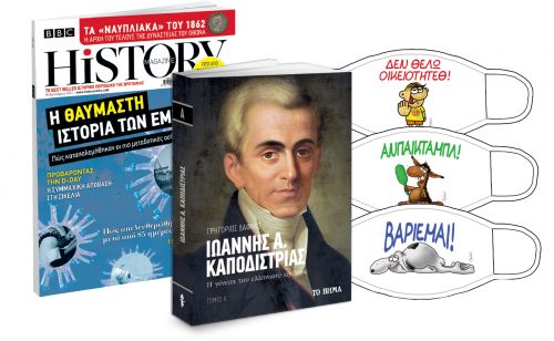 Uncategorized Αρκάς: Επανακυκλοφορούν οι συλλεκτικές μάσκες του, “Ιωάννης Καποδίστριας”, ΒΒC History Magazine & ΒΗΜΑgazino την Κυριακή με ΤΟ ΒΗΜΑ 01.02.2021